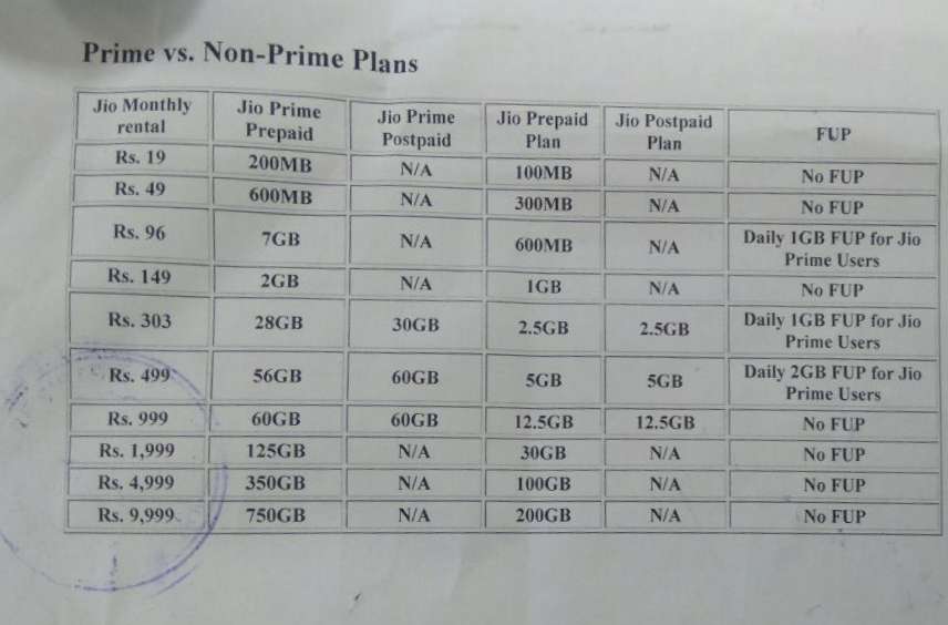 0 C "JIO PRIME VS NON PRIME PLANS NI JIO OFFICIAL IMAGE. "