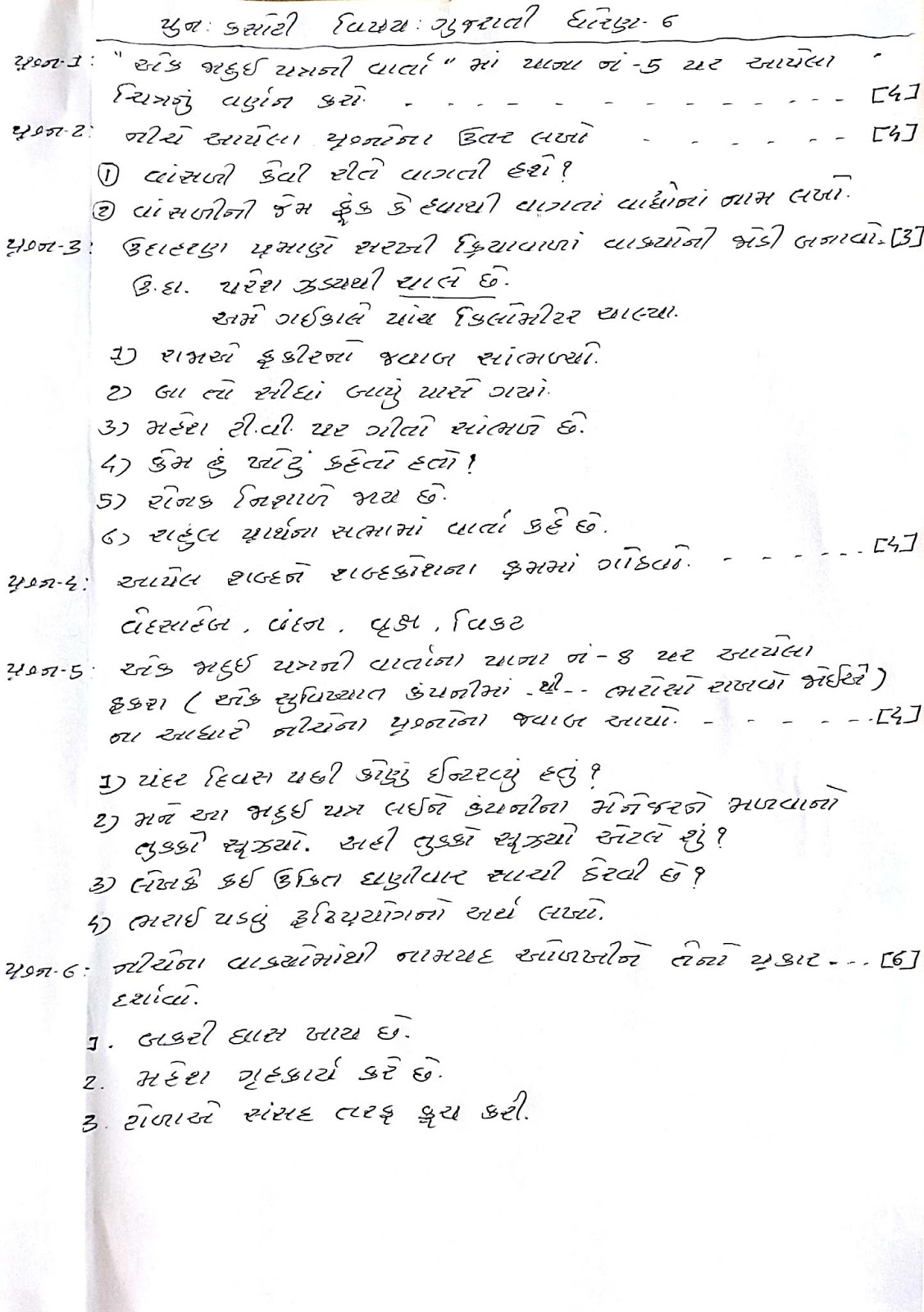 PUNAH UNIT TEST NUMBER-1 MATE STD-6 GUJRATI PAPER DOWNLOAD.